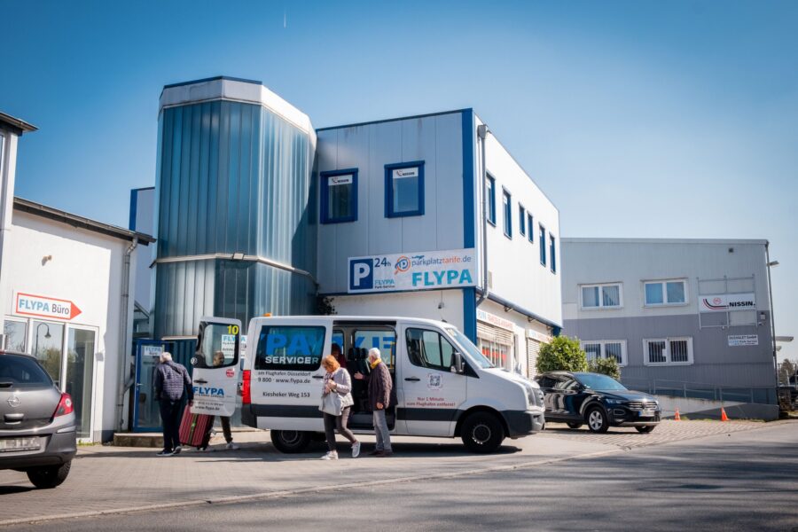 Unser Parkgelände befindet sich auf dem Kieshecker Weg 153 in 40468 Düsseldorf. Sie sollten zwischen 5-10 Minuten für die Übergabe Ihres Fahrzeuges und den Transfer einkalkulieren.